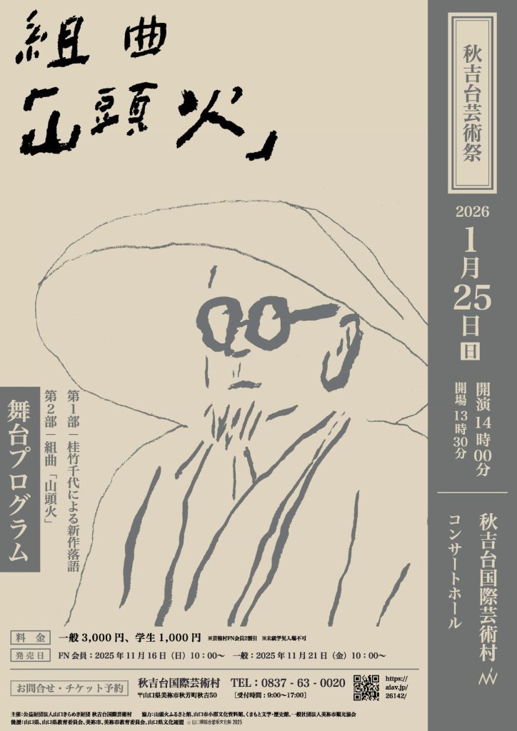 また、山頭火を題材とした新作落語の披露も含め、山口の偉人の世界をお楽しみください。